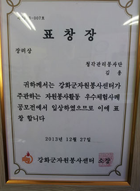 강화군자원봉사센턴 봉사 공모전 장려상