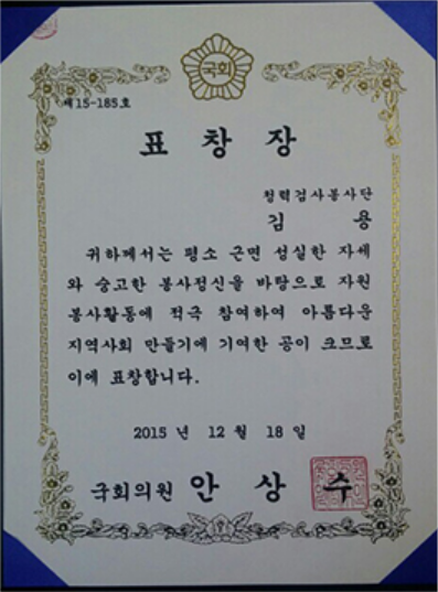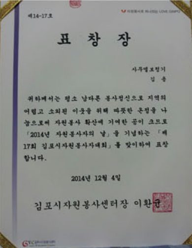 김포시자원봉사센터 표창장