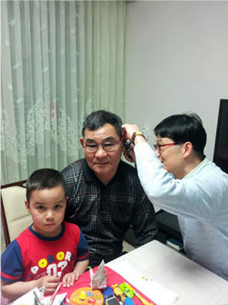 사랑의 밥차 사할린 교포 청력검사